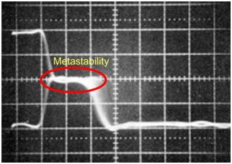 At its most basic level, metastability is what happens within a register when data changes too soon before or after the active clock edge; that is, when setup or hold times are violated. A register in a metastable state is in between valid logic states, and the process of settling to a valid logic state takes longer than normal. It will eventually fall into a stable “1” or “0” state, but there is no way to predict which way it will fall or how long it will take. Think of it as tossing a coin millions of times. There are actually three possibilities: heads, tails, or once in a great while the coin just might stick the landing and end up on its edge, if only for a while. The question is, will that while be longer than a clock cycle? That’s metastability.