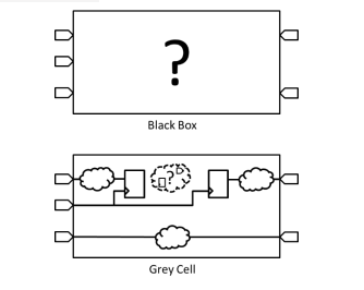 A Grey Cell differs from a black box in that a black box has no logic inside. With a black box, you can analyze connectivity only. Grey cells enable the analysis of CDCs in module-to-module connections while masking the details and preserving the trade secrets of the original IP provider.