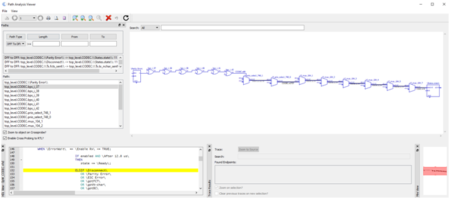 With VVS, once the design has been updated, and prior to synthesis and implementation, the developer can run the path analysis. This analysis quickly identifies the longest path within the design (e.g., between registers, input to output, or input to register/register to output).